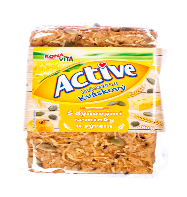 Pšeničný kvásek 39% (pšeničná mouka, voda), pšeničná mouka, celozrnná žitná mouka, sýr ementál 10% (mléko, jedlá sůl, stabilizátor: chlorid vápenatý, sýrařské kultury), dýňová semínka 10%, pšeničná grahamová mouka, kukuřičná mouka, pšeničný lepek, lněná semínka hnědá, lněná semínka zlatá, pekařské droždí, mořská sůl, olivový olej 2%, sezam, ječná sladová mouka, sušený žitný kvásek 1% (žitná mouka, voda, zralý kvásek)